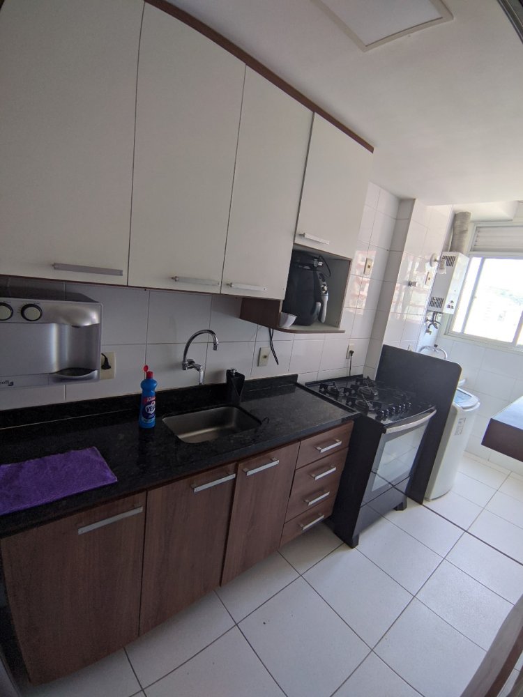 Excelente apartamento em condomínio com play clube com lazer total, junto ao Largo do Marrão, mobiliado com móveis planejados de qualidade, condicionador de ar SPLIT na sala, indevassado, piso porcelanato na sala, constituído de: Varanda, ampla sala em 2 ambientes, 2 quartos com armários planejados, suite e banheiro social com boxes blindex e armários sob pias, copa cozinha mobiliada, área de serviço e 1 vaga na escritura. Condomínio com piscinas adulto e infantil, churrasqueira, forno para pizza, fitness, play, salão de festas, sauna, sala de repouso e parquinho.