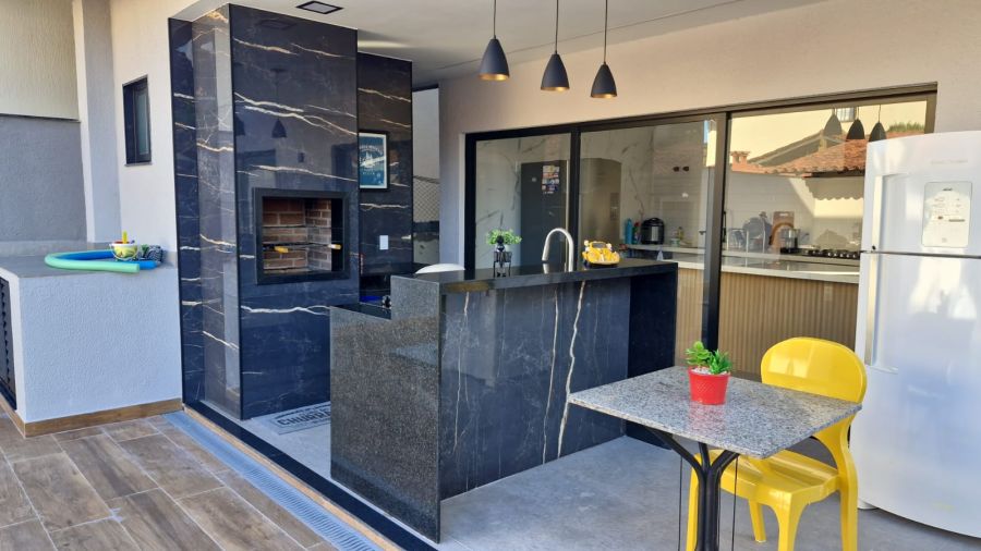 Área externa : Cozinha gourmet com churrasqueira, piscina com hidromassagem, projeto paisagismo, lavanderia e 1 salão de jogos de 48m2, podendo ser transformado em 1 suíte.