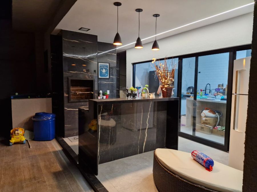Composição : 1º pavimento: Suíte master com closet, 2 salas (sala de jantar e TV), cozinha gourmet, lavabo, garagem para 4 carros sendo 2 carros cobertos, sistema de água quente na cozinha e banheiros (boiller).