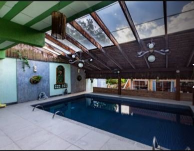 Terreno plano com 600 m². São 400 m² de área construída, composta por: Amplo salão com piso de granito, 5 dormitórios (sendo 4 suítes), copa e cozinha com armários planejados, DCE, área de serviço. Área gourmet com churrasqueira e forno de pizza, além de muita natureza no entorno. Piscina aquecida e coberta.